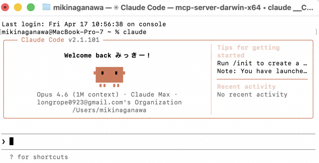 ターミナルを、初めて開いた