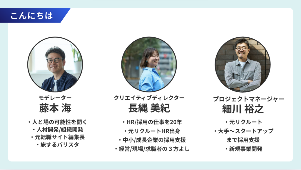 事前に寄せられた“お悩みハガキ”をもとに、採用の現場に長く関わってきた3人が、それぞれの視点から向き合いました。
