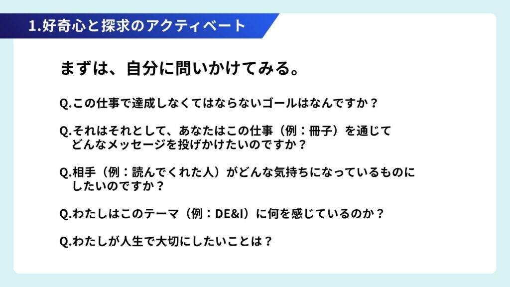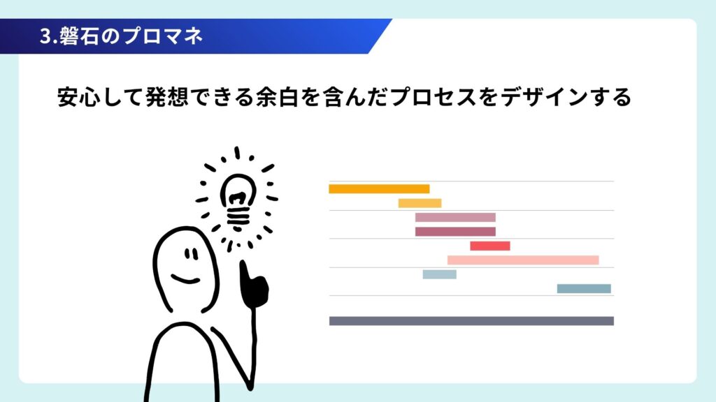 • 安心できる余白をデザインする: タイトなスケジュールであっても、「ここは発想できる時間だ」と意識しながらプロセスをデザインする。